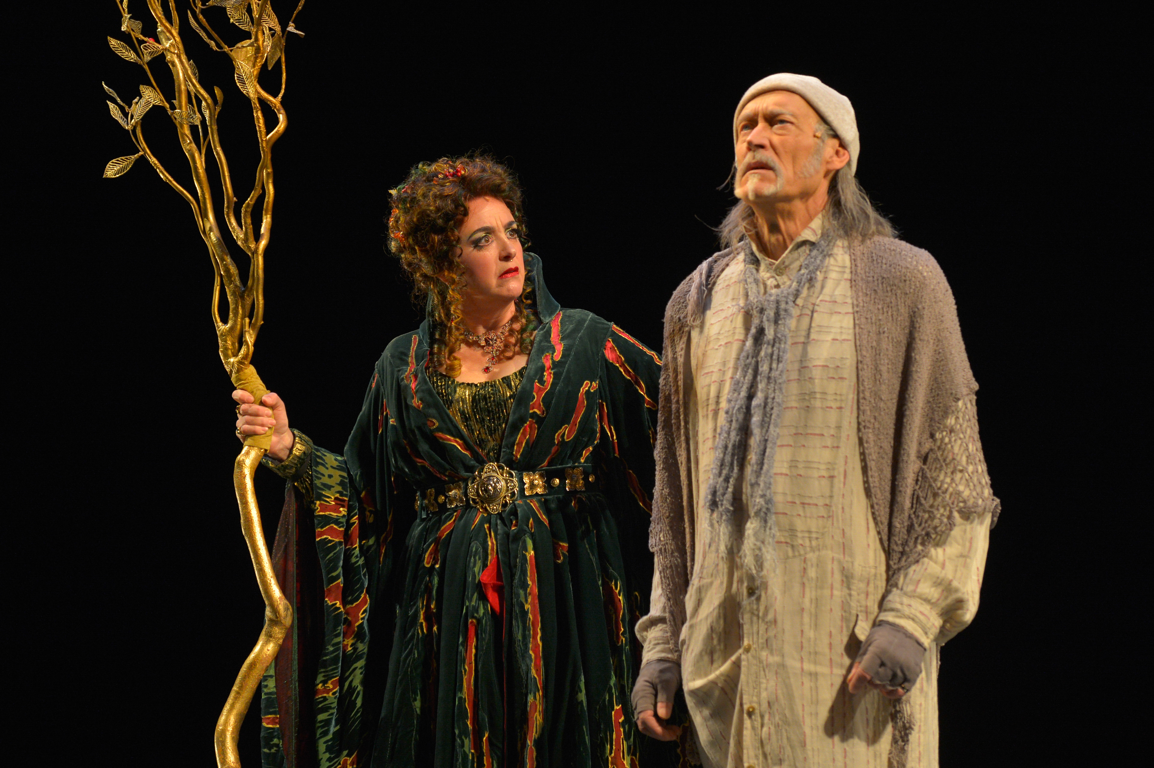 Makeup Designs for Christmas Carol at American Conservatory Theater 2014 and 2015 - the Gray wig is The Ghost of Christmas Past, the Brown/Green/Gold wig is The Ghost of Christmas Present